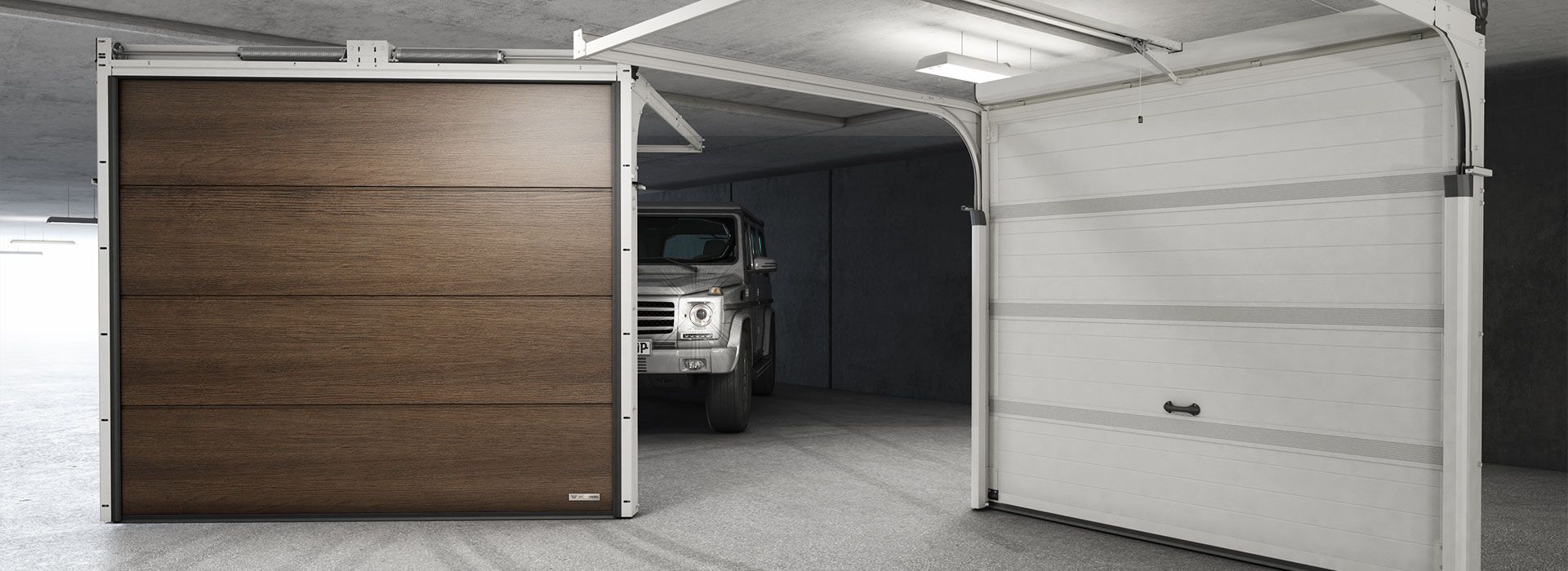 Il lato interno dell'involucro e i sistemi - guida, sicurezza e sospensione - sono verniciati a polvere in RAL 9002 o RAL 9005 (Black Edition). Questa caratteristica unica ti concede il lusso di un design moderno e di una finitura elegante anche in garage.